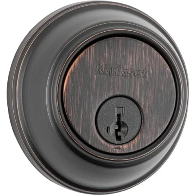 Kwikset 817 Deadbolt Lock, Venetian Bronze Round Exterior Keyed Front Entry Door, Pick Resistant SmartKey Rekey Security, Single Cylinder Dead Bolt, with Microban Protection