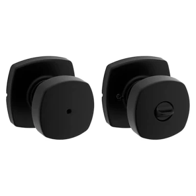 Kwikset Arroyo Privacy Bed/Bath Knob with Soft Modern Rose in Matte Black 97300 966