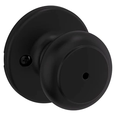 Kwikset Cove Interior Privacy Door Knob with Lock, Handle for Bathroom and Bedroom, Matte Black Keyless Turn Lock Doorknob