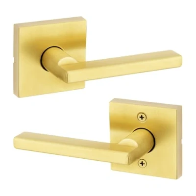 Kwikset Halifax Interior Passage Door Handle, Lever for Closet and Hallway Doors, Reversible Non Locking Handle Lever, Satin Brass, with Microban Protection