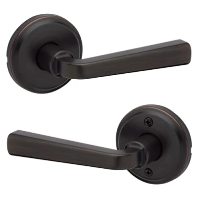 Kwikset Trafford Interior Passage Door Handle, Lever for Closet and Hallway Doors, Reversible Non Locking Handle Lever, Venetian Bronze, with Microban Protection