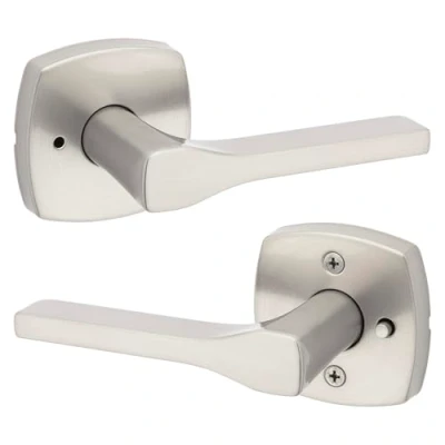 Kwikset Tripoli Lever Interior Privacy Door Handle with Lock, for Bathroom and Bedroom, Satin Nickel Reversible Keyless Turn Microban Protection