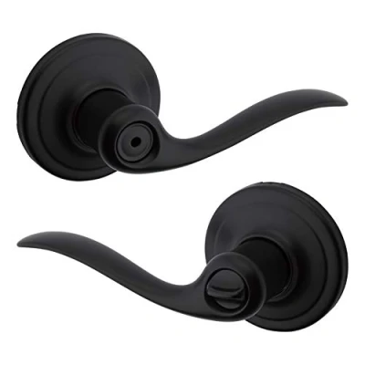 Kwikset Tustin Interior Privacy Door Handle with Lock, Lever for Bathroom and Bedroom, Matte Black Reversible Keyless Turn Microban Protection