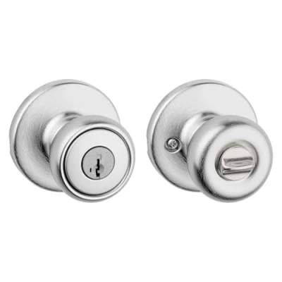 Kwikset Tylo Entry Door Knob with Lock and Key, Secure Keyed Handle Exterior Doorknob, Front Entrance Bedroom, Satin Chrome, Pick Resistant SmartKey Rekey Security