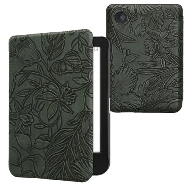 kwmobile Case Compatible with Kobo Clara BW/Colour eReader Cover Embossing Flowers Green