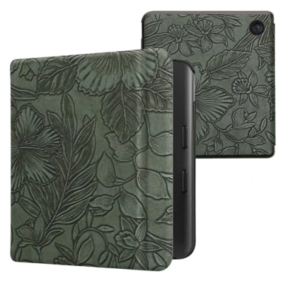 kwmobile Case Compatible with Kobo Libra Colour eReader Cover Embossing Flowers Green