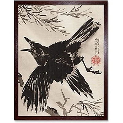 Kyosai Crow Willow Tree Japanische Malerei ungerahmt Wandkunst Poster Home Decor Premium