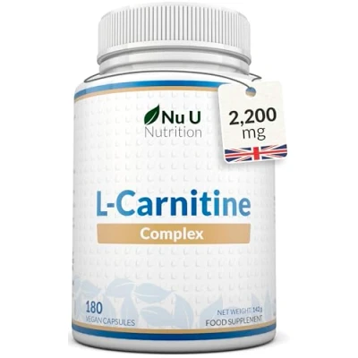 50% MORE CAPSULES - Our premium L-Carnitine tartrate supplement is highly cost-effective, providing 180 capsules per bottle, which equals 45 servings. This is 50% more capsules than most other supplements with the same formulation, which typically offer only 120 to 150 capsules per bottle. As with all our products, we strive to deliver the highest quality and best value for your money. You won’t be disappointed. HIGHEST STRENGTH L-CARNITINE - Our formulation delivers 2,200 mg of L-Carnitine per 4-capsule serving, making it one of the strongest formulations available. Many other L-Carnitine supplements only offer 2,000 mg per serving, making our 2,200 mg formulation significantly more potent and effective. Additionally, our L-Carnitine capsules are allergen-free, non-GMO and suitable for vegetarians and vegans. FUEL YOUR ENERGY LEVELS - We have enhanced our L-Carnitine capsules with complimentary nutrients to support your active lifestyle and fitness goals. Our expertly formulated supplement includes Vitamin D which contributes to the maintenance of muscle function and bones as well as Vitamins B2, B3, B6 and Chromium which contribute to energy-yielding metabolism and the reduction of tiredness and fatigue. Our capsules are easy to swallow and fast acting, making them ideal pre or post workout. PREMIUM L-CARNITINE - Our capsules use L-Carnitine L-Tartrate, the preferred form of L-Carnitine for sports nutrition when compared to Acetyl L-Carnitine. L-Carnitine facilitates the transport of fatty acids into cells for energy, effectively fueling your workouts. Our high bioavailability formula ensures fast-acting results. The convenient capsule form also makes them perfect for on-the-go use, whether at the gym or while running errands. THE NU U NUTRITION STORY - TRUSTED SUPPLIER OF NUTRITIONAL SUPPLEMENTS - Starting as a family business in 2014, we’ve expanded to offer a diverse range of high-quality supplements designed to support different lifestyles. Our mission is to make wellness simple, with premium ingredients that cater to your daily nutritional needs—whether for general health or targeted goals.