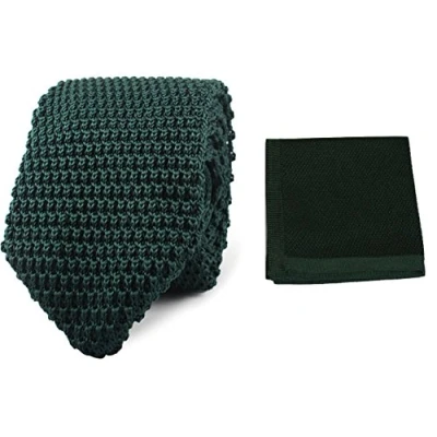 L&L® Hand Made Men's Fashion Knit Knitted Tie+Hankerchief Set Hanky Woven Pointed UK (Dark green)
