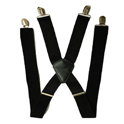 L&L® Heavy Duty Mens Ladies BRACES BLACK SUSPENDER ELASTIC 50mm WIDE Durable Trouser (Black)