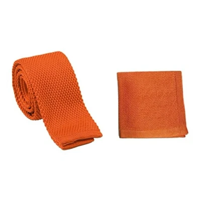 L&L® Men's Knit Knitted Tie + Pocket Square Hankerchief Set Hanky Woven UK (Orange)