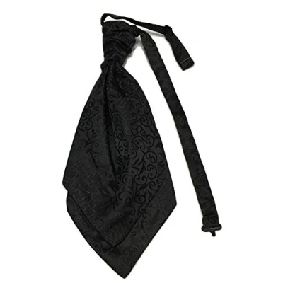 L&L® Mens Satin Ruche Paisley Swirl Floral Cravat Tie Double Layers Event Wedding (Black)