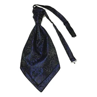 L&L® Mens Satin Ruche Paisley Swirl Floral Cravat Tie Double Layers Event Wedding (Navy)