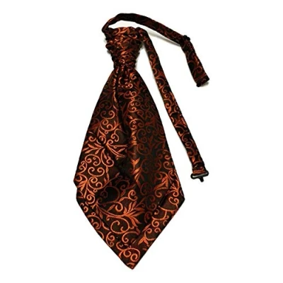 L&L® Mens Satin Ruche Paisley Swirl Floral Cravat Tie Double Layers Event Wedding (Orange)