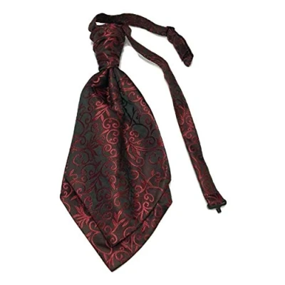 L&L® Mens Satin Ruche Paisley Swirl Floral Cravat Tie Double Layers Event Wedding (Wine red)