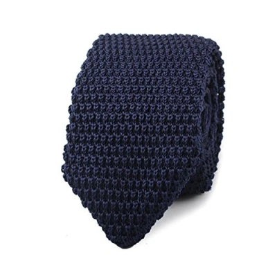 L&L® Navy Blue Collection Woven Paisley Jacquard Silk Knitted Satin Tie Wedding (Knitted Pointed Tie)