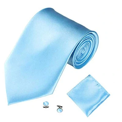 L&L® Skinny Mens wedding event prom party necktie tie+Handkerchief+cufflinks set (Sky blue)