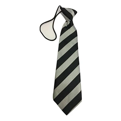 100% Brand new elastic neckband with pre tied tie Lentgh: 27 cm Width:4.5-6.5cm(widest part) 100% Polyester Woven(not printed) Package included: 1x school striped tie