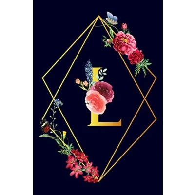 L: Monogram Initial L Notebook Gift for Women & Girls. Beautiful Floral Gold on Navy Blue Lined Personalized Journal Diary