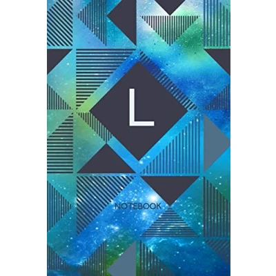 L Notebook: Monogram Initial Personalized Blank Wide Lined Journal Gift with Modern Green & Blue Contemporary Starry Space Paint Splatter Geometric Design for Men Women