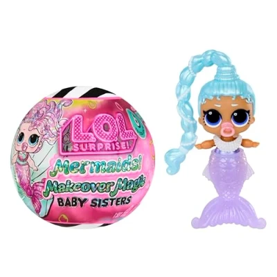 MERMAID TRANSFORMATION: Put on your Baby Sister’s removable mermaid tail to transform her into an adorable mini mermaid DAZZLING COLOUR CHANGE: Dip the tail in ice water to reveal a bright colour-change surprise for splashy mermaid fun SOFT FLEXIBLE TAILS: Features a bendable, textured tail design that adds lifelike movement for underwater-themed play SHELL DISPLAY BALL: Each Baby Sister includes a shell-shaped ball and stand for stylish display or to pose alongside her mermaid friends 6 MERMAIDS TO COLLECT: Discover Lil Splash Queen, Lil Coral Dream, Lil Laguna Luxe, Lil Island B.B., Lil Sun Kissed QT and Lil SPF Cutie, each with unique tail colours and accessories RARE FINDS: Look out for the chance to find rare and ultra-rare Baby Sisters as you build your shimmering sea collection COMPANION TO THE TOTS: Designed to pair with the Mermaids Makeover Magic Tots range for expanded storytelling and ocean-inspired play FOR AGES 4+ YEARS: A fun collectable range featuring colour-change play, soft tails and display features for children aged 4 years and up, Manufacturer: MGA Entertainment