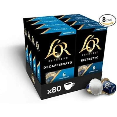 Discover the rich and sophisticated flavors of L'OR Espresso Decaffeinato and Ristretto. ENJOY 80 RECYCLABLE CAPSULES - designed from aluminium to preserve the exceptional taste and aroma of our distinctive espresso range. Every capsule contains 100% Common Grounds certified coffee, sourced from sustainable farms with a focus on quality and ethical practices. Compatible with L'OR BARISTA and Nespresso Original coffee machines*. *Registered trademark of a third party, unrelated to JACOBS DOUWE EGBERTS