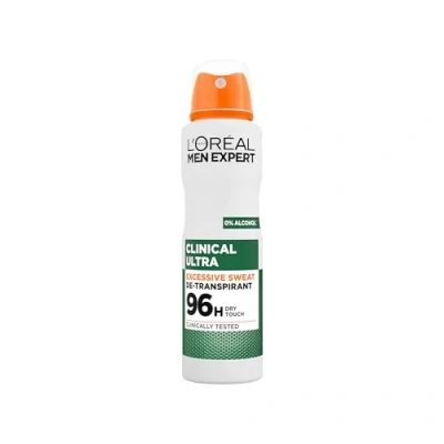 CLINICALLY PROVEN SWEAT CONTROL: Clinically proven and precisely targeted for excess sweat, this high-potency formula keeps you dry and provides all-day protection ADVANCED ANTI-ODOUR SHIELD: Powerful anti-odour action that neutralizes unwanted smells, keeping you fresh, confident, and unstoppable from morning till night LUXURIOUS DRY TOUCH FINISH: Enjoy ultimate comfort with a pleasant, dry touch finish; No sticky residue; skin feels smooth, clean, and completely dry INVISIBLE PROTECTION: Fast-drying formula applies invisibly, leaving zero unsightly white marks on clothing; Protects the skin and leaves you feeling cool and comfortable CONTENTS: 1 x L'Oréal Men Expert Clinical Ultra Anti-Perspirant Spray, Clinically Proven Sweat Control, Anti-Odour & Dry Touch Finish, Formulated for Excess Sweat, 250ml