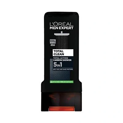 L'Oreal Men Expert Total Clean Shower Gel XL 400ml is a 5-in-1 gel for face, body, hair, shaving, and moisturizing. Infused with carbon to deeply cleanse and remove impurities, it simplifies your shower routine and leaves you feeling fresh every day.