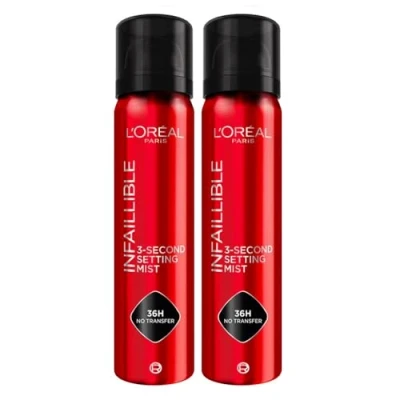 L'Oreal Paris DOUBLE Setting Spray, Infallible 3 Second Makeup Spray Mist For Face, Up To 36 Hour Wear, Fixing Waterproof And Sweatproof, Transfer Proof Non Sticky 75Ml