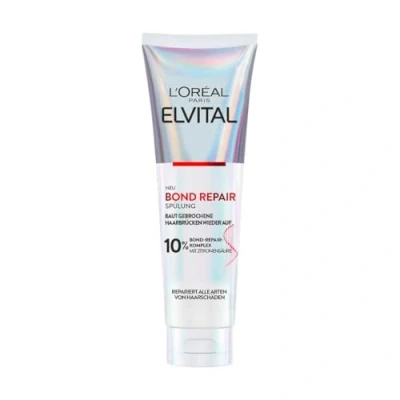 Nourishing conditioner for stronger and visibly healthier hair and against all types of hair damage, ideal for increasing fibre resistance as well as for preventing hair breakage Result: rebuilds broken hair bridges, repairs all types of hair damage and ensures less hair breakage and more shine Directions for use: after Bond Repair Rescue Pre Shampoo and Shampoo spread the conditioner into the lengths and tips and then rinse thoroughly 10% bond repair complex with citric acid to rebuild broken hair bridges, goes under the hair surface and inside the hair Box contents: 1 x L'Oréal Paris Elvital Bond Repair Rescue conditioner for rebuilding broken hair bridges, capacity: 150 ml