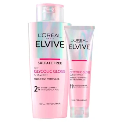 L'Oréal Paris Elvive Glycolic Gloss 200ml Shampoo + 150ml Conditioner with Acid for Porous and Dull Hair 2 Bottles