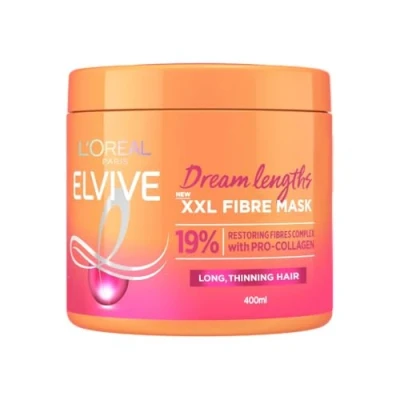 L'Oréal Paris Elvive XXL Fibre Mask for Long, Damaged, Thinning Hair, Restorative Treatment with Pro Collagen, Dream Lengths, 400 ml