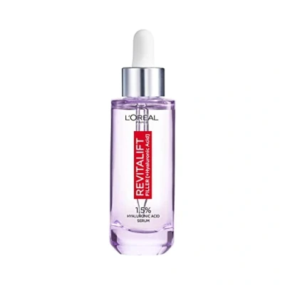 Anti-age face serum with 1.5% hyaluronic acid and vitamin C, intensive rehydration for smooth, hydrated skin and visibly reduced wrinkles, suitable for all skin types Result: plumper, smoother and firmer skin after just one week of use Application: apply 2 to 3 drops to cleansed and dry skin before daily care, suitable for use on face and neck, with pipette for precise dosage Formula consisting of 2 types of hyaluronic acid, macro hyaluronic acid for rehydration and smoothing on the skin surface, micro-hyaluronic acid to replenish the skin in depth Box contents: 1x L'Oréal Paris Revitalift filler anti-ageing serum against wrinkles, with concentrated hyaluronic acid, 50 ml