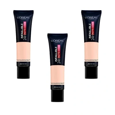 L'Oréal Paris Infallible 24h Matte Cover Foundation 25 Rose Ivory, Pack of 3 (3 x 30ml)