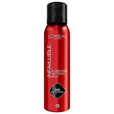 The UK's #1 Setting Spray* The iconic L'Oréal Paris Infallible 3-second setting spray mist now available in XL size 150ml! A micro-fine fast acting and fast drying setting spray that will set your makeup for up to 36 hours, Dries in 3 seconds without leaving a sticky or tacky residue, Be ready to go in a flash The Infallible 3-Second Setting Spray will ensure your makeup stays in place with minimal effort, It is transfer and sweat-proof whilst also being lightweight, For a flawless look all day long Apply your makeup and leave to dry for at least 30 seconds, Shake the setting spray and hold 30cm away from the face, Spray in a circular motion for even distribution, Dries in 3 seconds