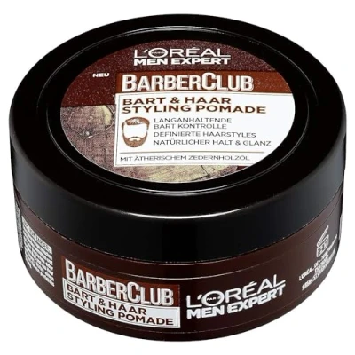 L'Oréal Paris Men Expert Beard Pomade and Hair Wax, Natural Finish, Barber Club & Styling Pomade, 1 x 75 ml
