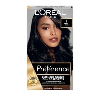 L'Oreal Paris Preference Hair Dye, Long Lasting, Luminous Permanent Colour, 1, Napoli (Packaging may vary)