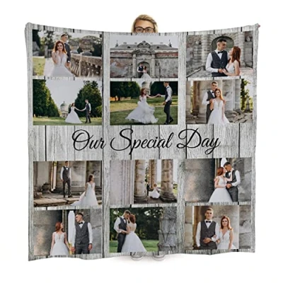 L&S PRINTS Custom Photo Blanket Extra Large 150cm x Fleece Throw Collage Wood Design Gift Dementia Made in England