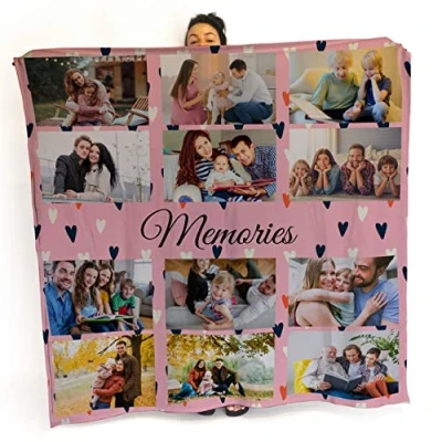 L&S PRINTS Personalised Photo Blanket Extra Large 150cm x Picture Collage Fleece Throw Love Hearts Design 12 Custom Family Gift Made In England