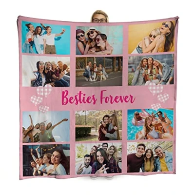 L&S PRINTS Pink Gingham Heart Personalised Photo Fleece Extra Large 150cmx 150cm Warm Throw Custom 12 Picture Collage Blanket Gift Made In England