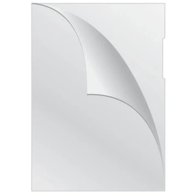 made of polypropylene foil, with a thickness of 160 µm;; colour: clear (transparent) crystal clear;; rounded top corner; L – type; cut on top and along the edge; outer dimensions: 217x307mm 100 pcs in sales unit;