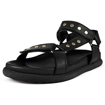 L37 HANDMADE SHOES Women's Starry Night Flat Sandal, Schwarz, 4 UK