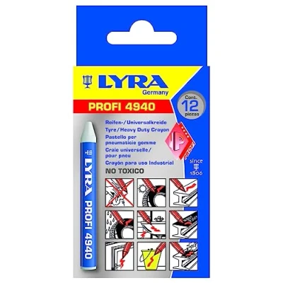 L4940001, LYRA 4940 Tyre/Universal Chalk Mark All for Professional, Weatherproof Markings on Many Surfaces, Box of 12 White Chalks