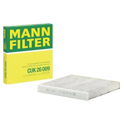 MANN-FILTER Cabin Air Filter CUK 26 009 / Dimensions (mm): A = 254; B = 235; H = 32 / Premium Filter in Original Equipment Quality High-quality MANN-FILTER cabin filters with active carbon - nearly 100% protection from particles like pollen, diesel soot & tyre abrasion / Additional protection from harmful gases & unpleasant odour The trated highly-effective activated carbon gives protection against harmful gases such as ozone, nitrogen oxide or sulphur dioxide and eliminates unpleasant odours during the entire service interval Looking to find the correct filter? Select: brand, model, vehicle type, and engine type above to see which one fits your vehicle MANN+HUMMEL complies with REACH-regulation + supports the goal of Improved health and safety through the design, manufacturing, usage, disposal and recycling of our products
