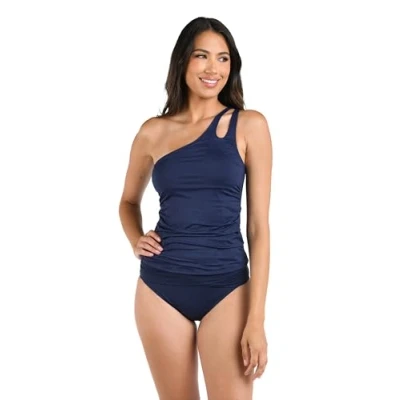 La Blanca Women's Island Goddess One Shoulder Keyhole Tankini Swimsuit Top, Indigo, 16