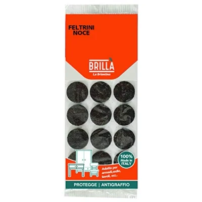 The round walnut gliders are 12 perfectly self-adhesive felt pads that help prevent noise from sliding and protect furniture and floors from abrasion or grooves Scratch resistant and self-adhesive, ideal for cabinets, chairs, tables and other furniture and furniture in your home Box contents: 10 pieces Dimensions: diameter 2 cm; height 2 mm; colour: walnut; shape: round Composition: felt gliders 100% polyester, adhesive 100% Hotmelt