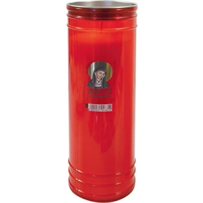 Santa Rita 100T Weekly Paraffin Votive Candle, Red Wax composition: white paste // Wick: waxed cotton Light holder: red, with silver grid Duration: 7 days Size: H 25 cm - Ø 8.5 cm Made in Italy Warning: Store the product in rooms with not excessively high temperatures, away from heat. Do not disperse into the environment after use. The product is intended to be used as a votive light. The seller declines all responsibility for any damage that may directly or indirectly be caused to people, property and pets by a use of the product other than the one for which it is sold.