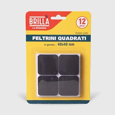 Square rubber gliders are 12 perfect self-adhesive rubber pads that help prevent noise from shifting and protect furniture and floors from marks of abrasion or scuffing Scratch resistant and self-adhesive, ideal for cabinets, chairs, tables and other furniture and furnishings in your home Package: 12 pieces Dimensions: 4 x 4 cm; height 3 mm / colour: black / shape: square Composition: felt 100% ethylene vinyl acetate (EVA), glue 85% water, 6% polyvinyl alcohol, 5% calcium carbonate, 4% polyacrylate