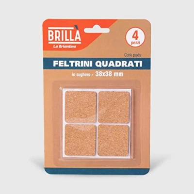 Square cork gliders are 4 perfect self-adhesive cork pads that help prevent noise from moving and protect furniture and floors from marks of abrasion or scuffing Scratch resistant and self-adhesive, ideal for cabinets, chairs, tables and other furniture and furnishings in your home Package: 4 pieces Dimensions: 3.8 x 3.8 cm; Height 1.5 mm / Colour: Cork / Shape: Square Composition: felt 100% cork, glue 85% water, 6% polyvinyl alcohol, 5% calcium carbonate, 4% polyacrylate