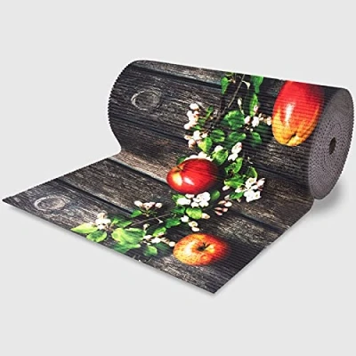 Inkjet Lemon Double Layer PVC and Polyester High Quality Printed Carpet Runner. 52 cm x 18 m can be cut to size The back is equipped with a scale of every 10 cm, which makes cutting easier Both the print and bracket are flexible and sturdy, so they will not fray or fray Ideal for placement in the kitchen or living room as As protection for sensitive surfaces Water-repellent, very easy to clean and clean.Colour: apple pattern in digital print.Dimensions: width 52 cm, length 18 metres, can be cut to size.Composition: backing material: 100% PVC, coated polyester.Made in Italy